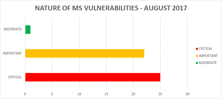 In this month, August 2017, Microsoft has published more than forty vulnerabilities in which more than twenty vulnerabilities are rated as critical and more than ten vulnerabilities are rated as important.