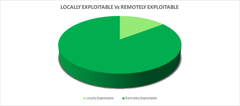 Another important classification is based on their nature of exploitability, we find that remotely exploited vulnerabilities are more than the locally exploitable ones.