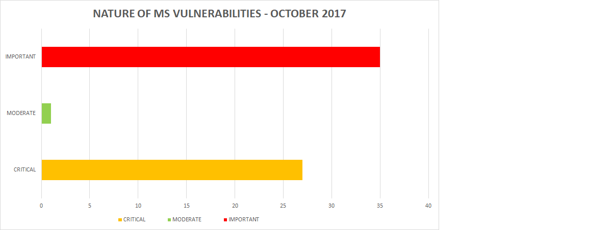 In this month, October 2017, Microsoft has published more than sixty vulnerabilities in which more than twenty five vulnerabilities are rated as critical and more than thirty vulnerabilities are rated as important.