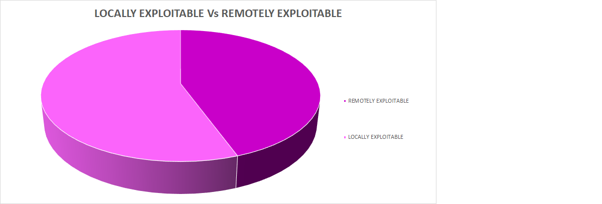 Another important classification is based on their nature of exploitability, we find that locally exploited vulnerabilities are more than the remotely exploitable ones.