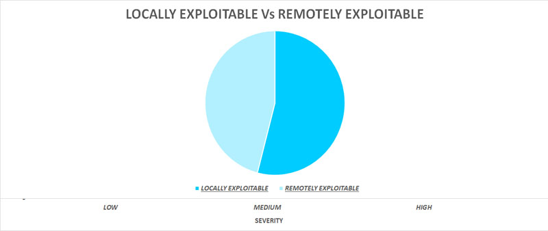 Another important classification is based on their nature of exploitability, we find that the locally exploited vulnerabilities are more than the remotely exploitable ones.