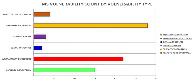 The below graph shows the count of MS Vulnerabilities based on the type of the vulnerability.