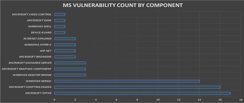 The below graph shows the count of MS Vulnerabilities based on the impacted component.