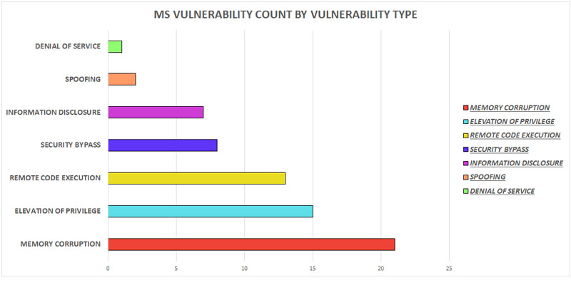 The below graph shows the count of MS Vulnerabilities based on the type of the vulnerability.
