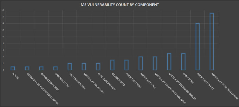 The below graph shows the count of MS Vulnerabilities based on the impacted component.