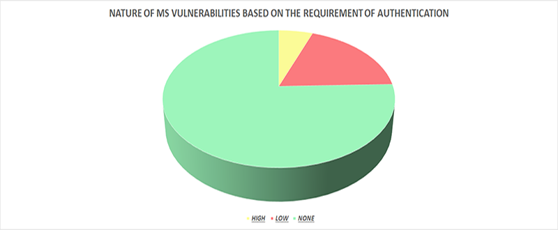 While classifying the vulnerabilities based on authentication, the vulnerabilities that does not require authentication are much higher than the vulnerabilities that requires high and low authentication.