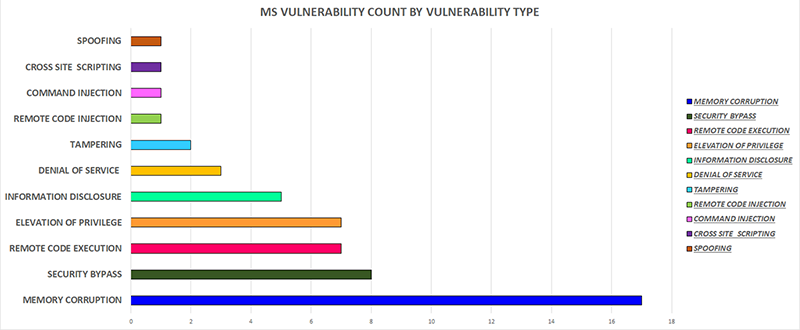 The below graph shows the count of MS Vulnerabilities based on the type of the vulnerability.