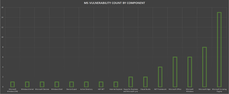 The below graph shows the count of MS Vulnerabilities based on the impacted component.