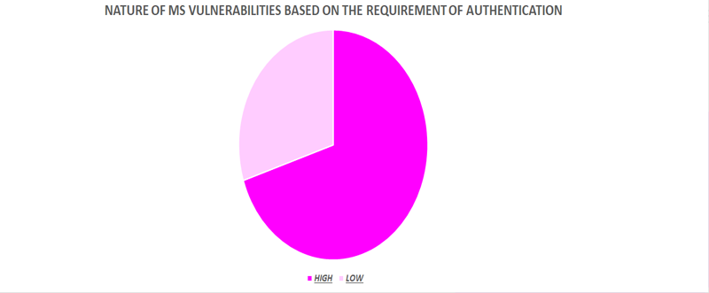 While classifying the vulnerabilities based on authentication, the vulnerabilities that require high level of authentication are much higher than the vulnerabilities that requires low authentication.