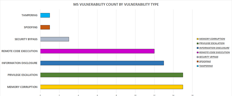 The below graph shows the count of MS Vulnerabilities based on the type of the vulnerability.