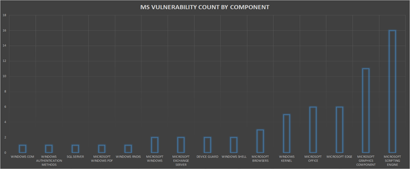 The below graph shows the count of MS Vulnerabilities based on the impacted component.