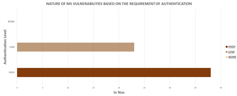 While classifying the vulnerabilities based on authentication, the vulnerabilities that require high level of authentication are much higher than the vulnerabilities that requires low authentication.