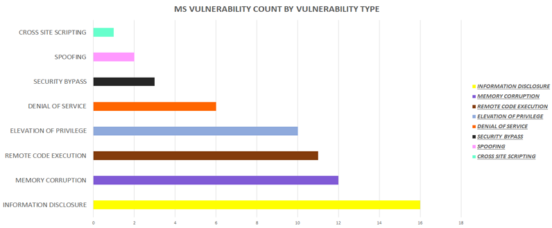 The below graph shows the count of MS Vulnerabilities based on the type of the vulnerability.