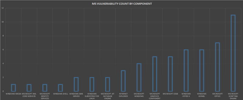The below graph shows the count of MS Vulnerabilities based on the impacted component.