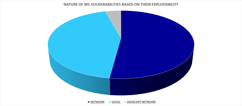 Another important classification is based on their nature of exploitability, we find that the remotely exploited vulnerabilities are more than the locally and adjacent network exploitable ones.