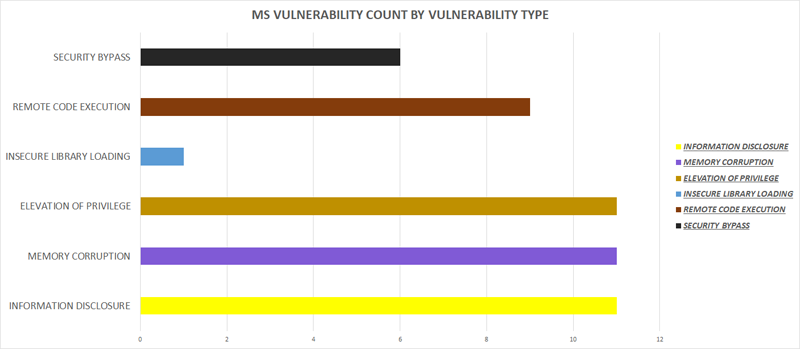 The below graph shows the count of MS Vulnerabilities based on the type of the vulnerability.