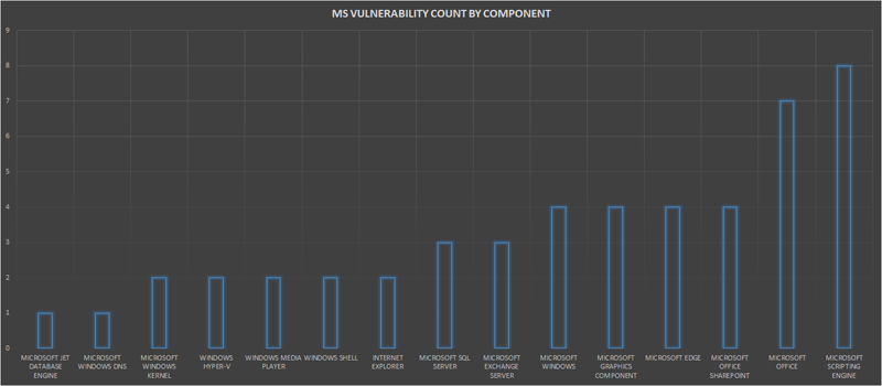 The below graph shows the count of MS Vulnerabilities based on the impacted component.