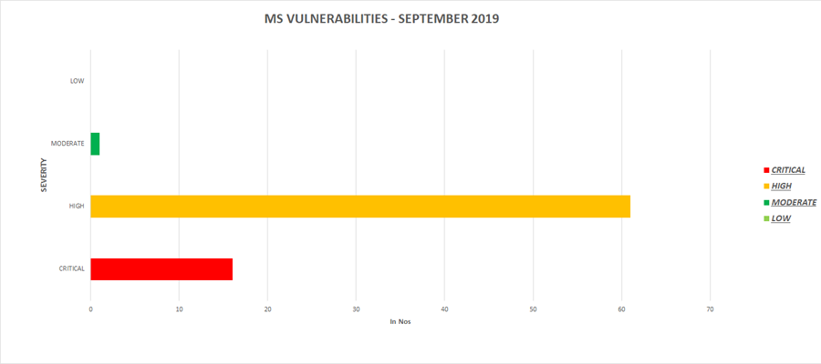 In this month, September of 2019, Microsoft has published more than seventy vulnerabilities in which more than ten vulnerabilities are rated as critical and more than sixty vulnerabilities are rated as important and one vulnerability is rated as moderate.