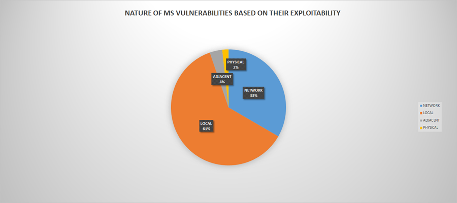 Another important classification is based on their nature of exploitability, we find that the network exploited vulnerabilities are less than the local exploitable ones.