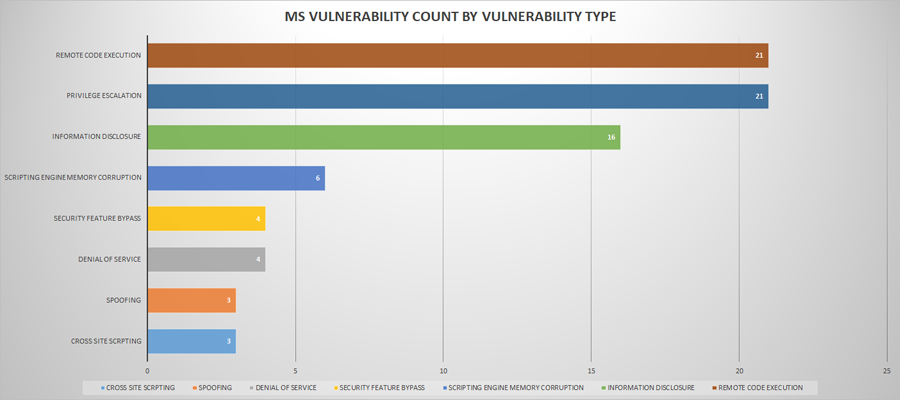 The below graph shows the count of MS Vulnerabilities based on the type of the vulnerability.