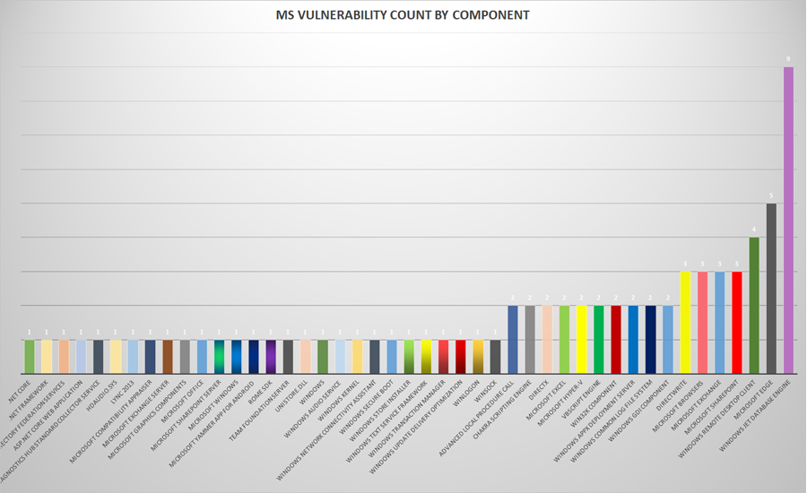 The below graph shows the count of MS Vulnerabilities based on the impacted component.