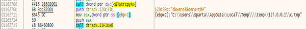 After harvesting all the data, the malware then creates a folder in the name of the local IP address (127.0.0.1 in this case) and started to store all the information in tmp file.