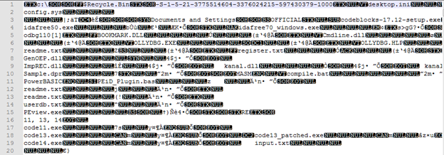 Although most of the content present in the file c.tmp~ is not human-readable, the names of the files and programs present in the system is printed in the file, the same can be which can be seen when opened in a notepad.