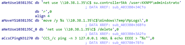 The malware uses the net use command to transfer the files from the victim’s machine to another machine. The machine’s IP address is 10.38.1.35 and the same can be seen in the below Figure 22.
