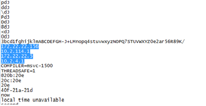 Along with the username, several IPs were found hardcoded in the malware (shown in Figure 5). All this information being explicitly written in the program suggests that there is a possibility that the malware was explicitly written in order to target the powerplant in KudanKulam.